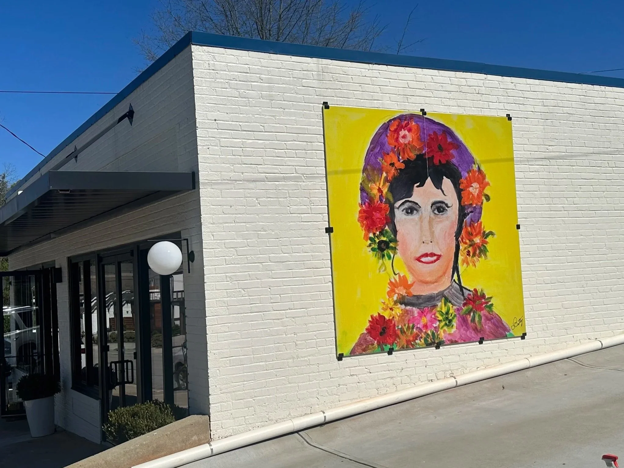 Betty Norton donated a small painting to the 2024 block pARTy and the committee members all gravitated towards the bright, happy imagery. The piece was installed on Bradford Street in Gainesville, GA.